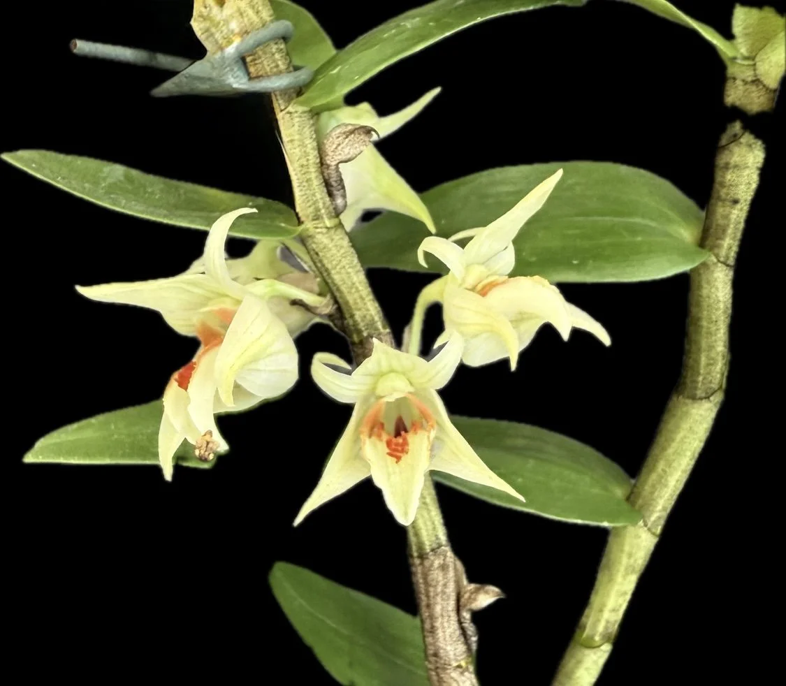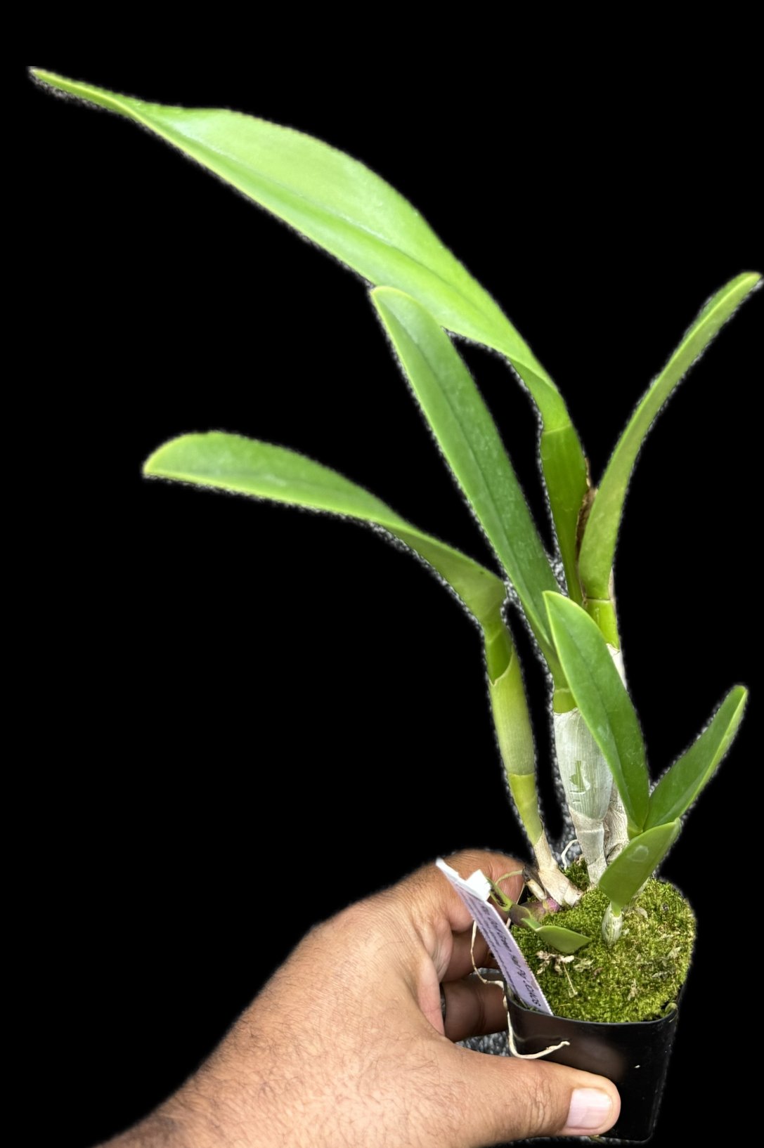 We grow these in our “Cattleya house” where they get medium to bright filtered light (2,500-3,000 foot-candles) and are watered when the media dries. These may be grown in pots/baskets or mounted.